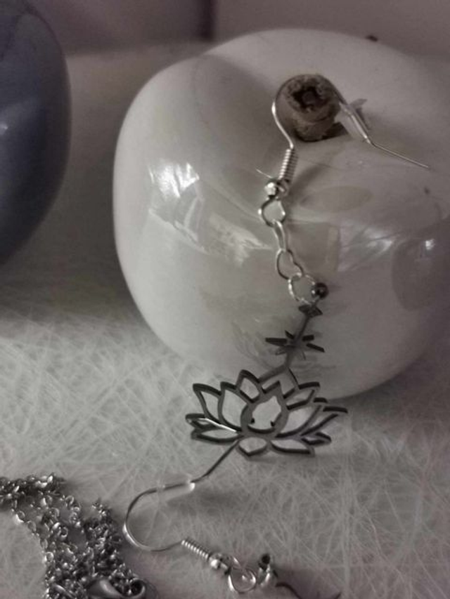 Boucles d'oreilles Fleur de Lotus en Acier Inoxydable Argenté - Fait Main