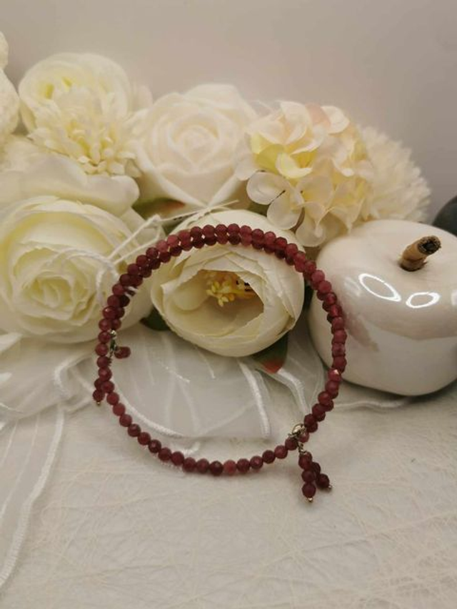 Bracelet Double Tour en Rubis et Acier Inoxydable