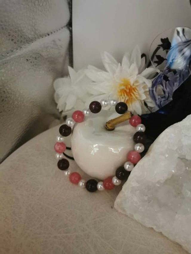 Bracelet Grenat, Rhodochrosite & Perles Blanches – Énergie et Douceur
