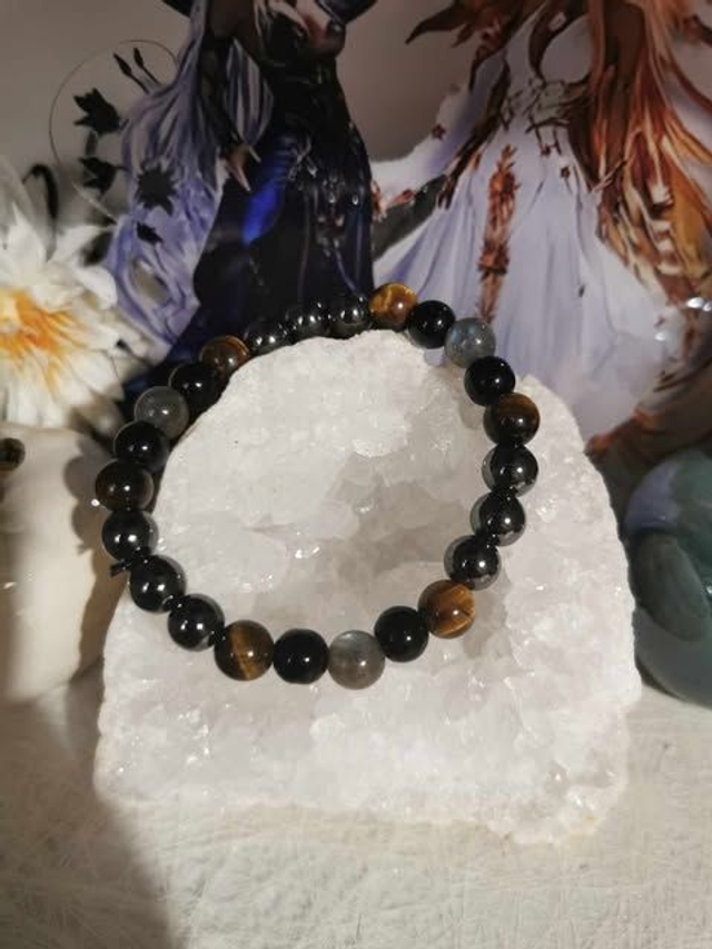 🛡️ Bracelet Protection – Œil de Tigre, Hématite, Obsidienne & Labradorite 🛡️