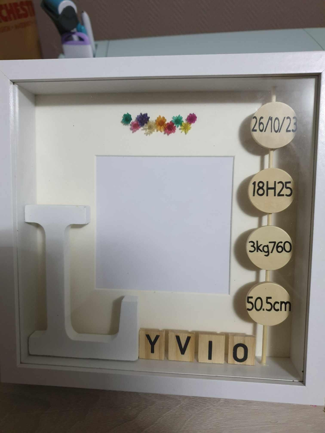 Cadre prénom 20 x 20 possibilité d'y mettre une photo de 10 x 10