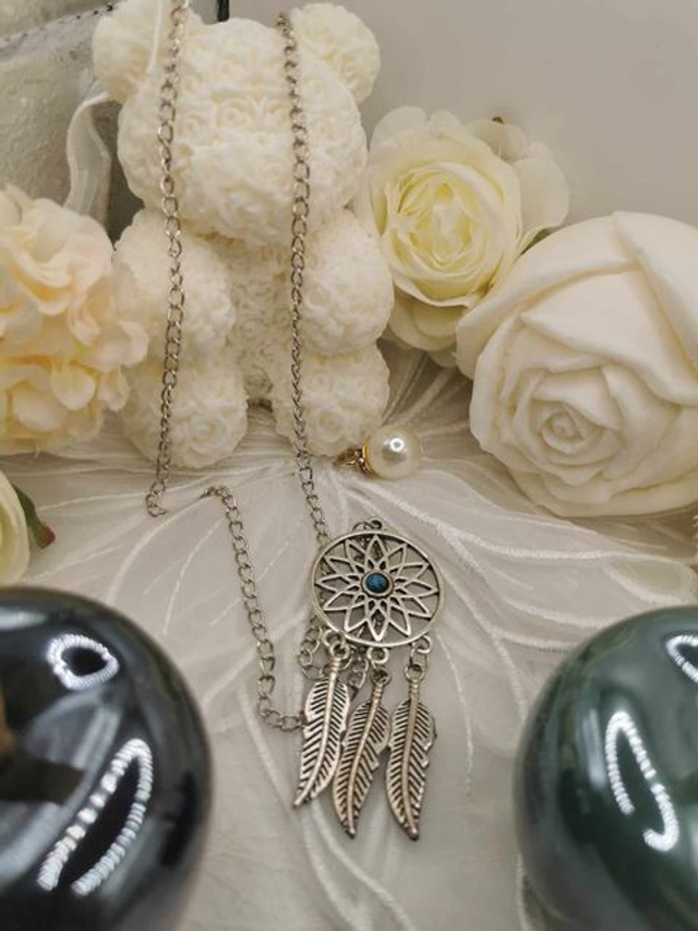 Ensemble collier et boucles d'oreilles en alliage, ornés de motifs attrape-rêves et de petites turquoises. Symboles de protection et d’énergie positive, ces bijoux ajoutent une touche bohème et élégante à votre style.
